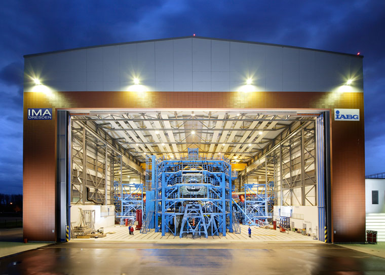 The aeroplanes which have been tested since the 60's with Münchner IABG acting as main contractor range from the Tornado to the Airbus - including the Airbus numbers 300, 310, 320, 330 and 340. The aim of this extended time test is to provide experimental evidence that the airframe has sufficient serviceable life and to eliminate any possible weak points still in evidence. Clients requiring these tests include all the major European aircraft manufacturers. The current test is carried out by the IABG in conjunction with Dresdener IMA Materialforschung und Anwendungstechnik GmbH. It only took less than two years to design and construct the test. The static tests were started in April 2001 and shortly before the first flight in September, the endurance tests were started with a new control technique developed by the IABG to realize the tests in a extremely short timeframe.
