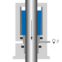 The safety catcher operates mechanically according to the functional principle of frictional contact. When unpressurised, the holding load builds up via the conical clamping system as the load sinks. The self-reinforcing principle comes into effect, locking the rod.