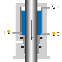 If the releasing pressure drops, the clamping segments, which are under spring preload, rest against the rod to be clamped. The resulting friction force secures the load, and the safety catcher is ready to take over the load.